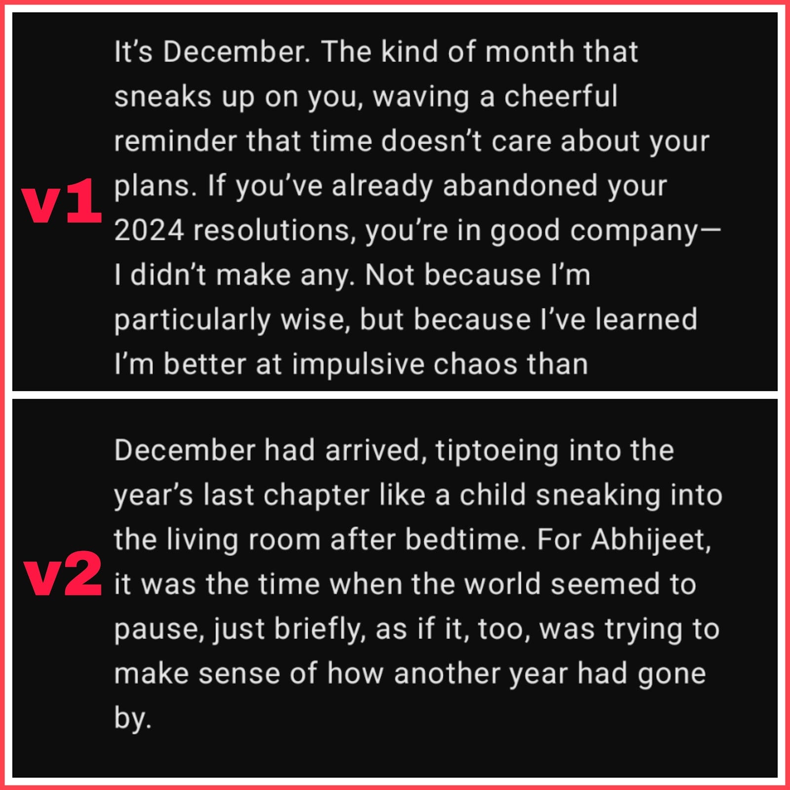 Then, I asked it to write the newsletter in third person, like a proper story. And boy, that was impressive. It was definitely Backman like. Not a perfect rendition but still melodic. Yeah, it felt soothing and melodic. Not all haphazard⦠the way I am.